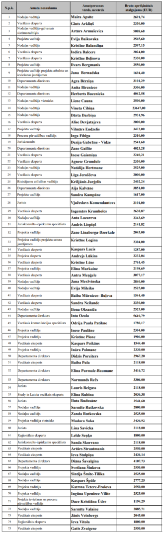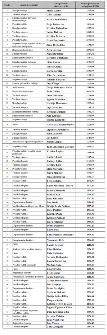 - Informāciju par darba samaksu, kas izmaksāta iestādes darbiniekiem, publisko Valsts un pašvaldību institūciju amatpersonu un darbinieku atlīdzības likumā noteiktajā apjomā un kārtībā.