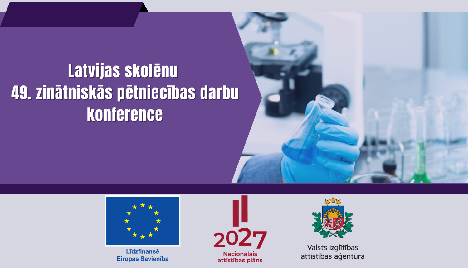 Skolēnu zinātniskās pētniecības darbu konferenci organizē Valsts izglītības attīstības aģentūras ESF+ projekta Nr. 4.2.2.3/1/24/I/001 “Pedagogu profesionālā atbalsta sistēmas izveide” ietvaros.