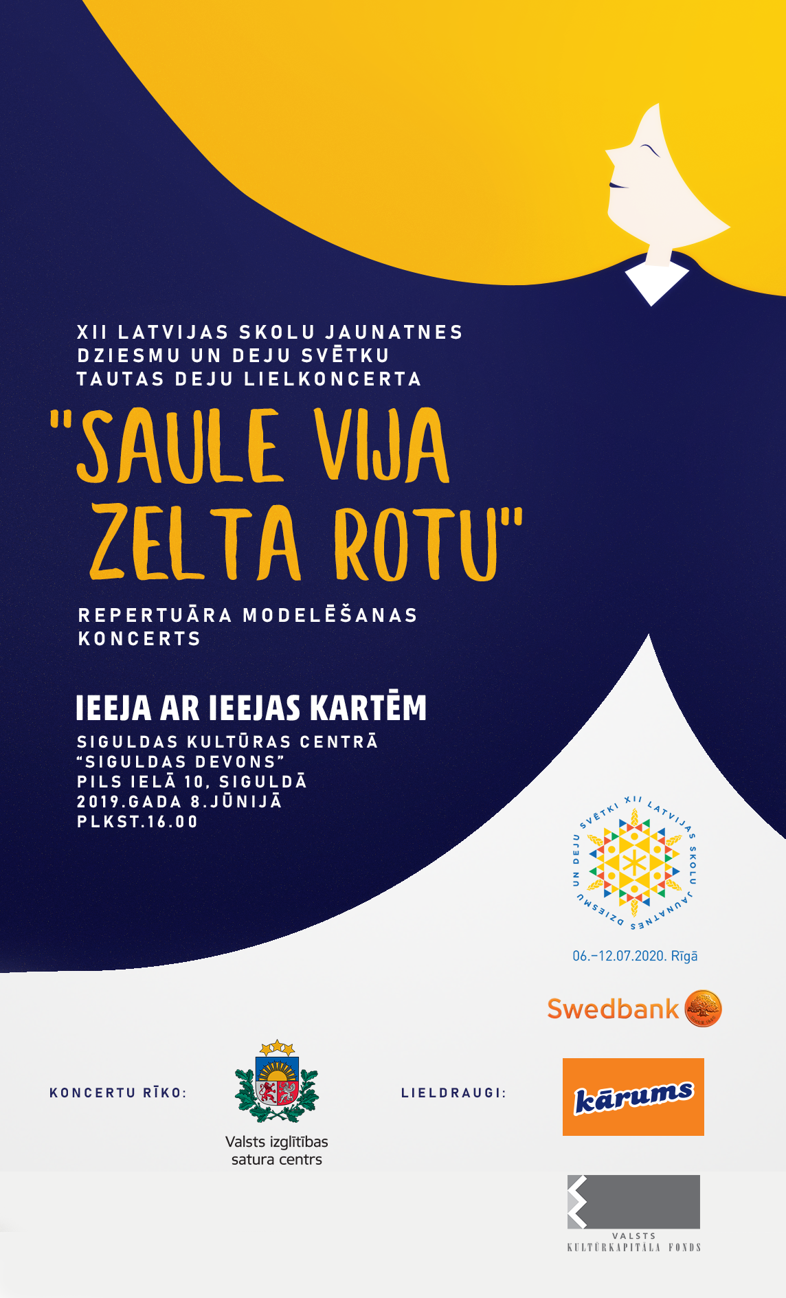 8.jūnijā plkst.16:00 Siguldas Kultūras centrā “Siguldas devons” notiks XII Latvijas skolu jaunatnes dziesmu un deju svētku Tautas deju lielkoncerta “Saule vija zelta rotu” repertuāra modelēšanas koncerts, kurā piedalīsies 500 dejotāju.
