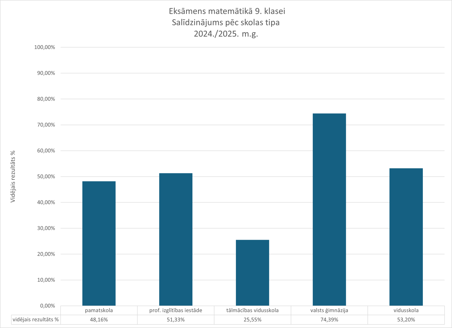 Salīdzinājums pēc skolas tipa