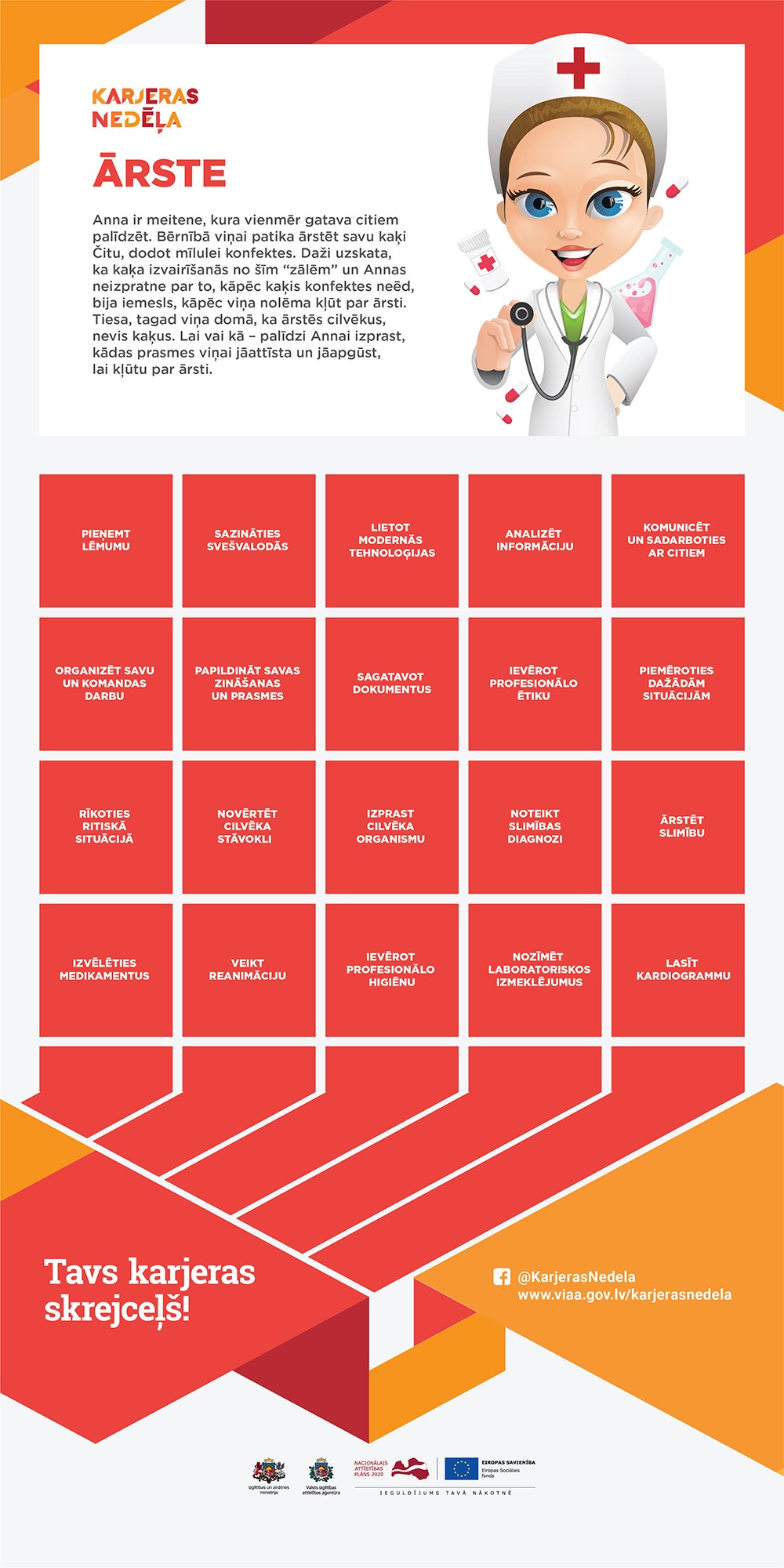 Lai palīdzētu izzināt profesiju pasaules dažādību, 1.-6. klašu skolēniem Valsts izglītības attīstības aģentūra (VIAA) sadarbībā ar psiholoģi, karjeras konsultanti, Vidzemes Augstskolas (ViA) docenti Agitu Šmitiņu un SIA “MIDIS” ir izstrādājusi digitāli interaktīvu spēli “Kļūšu par profesionāli”.