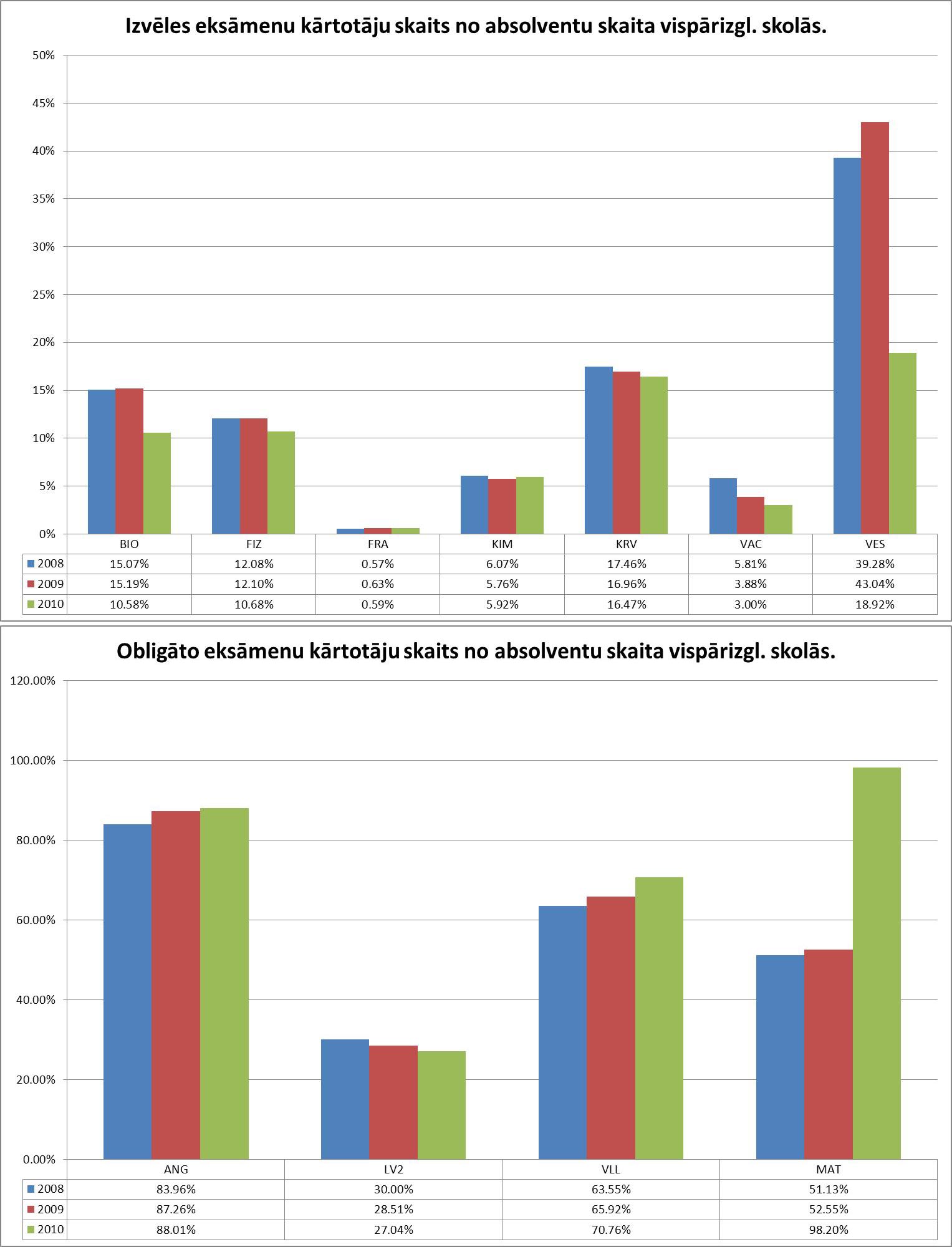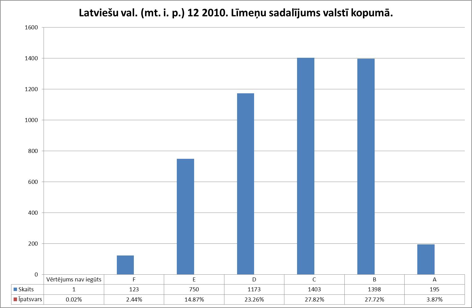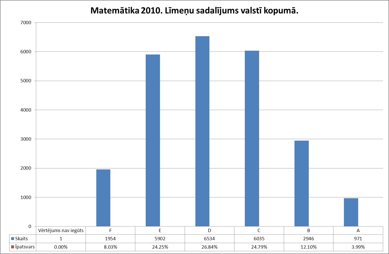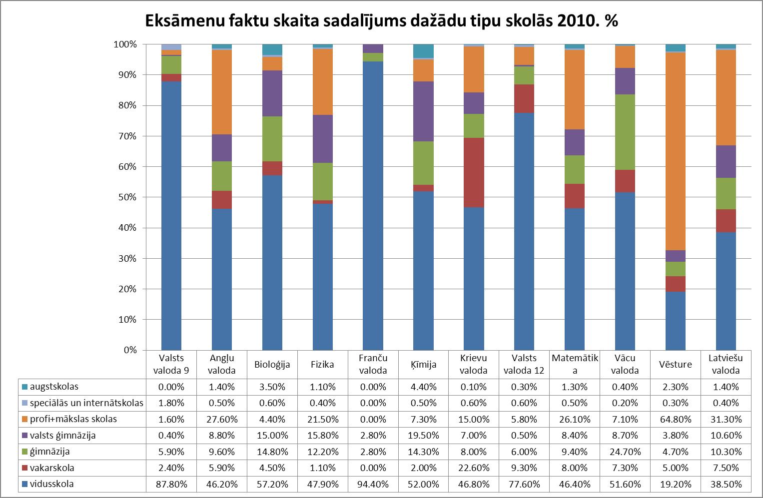 Ir apkopoti 2010.gada valsts pārbaudes darbu rezultāti. Kopumā tika apkopoti vairāk kā 90 tūkstoš centralizēto eksāmenu dati un vairāk kā 100 tūkstoš skolēnu rezultāti necentralizētajos valsts pārbaudes darbos.