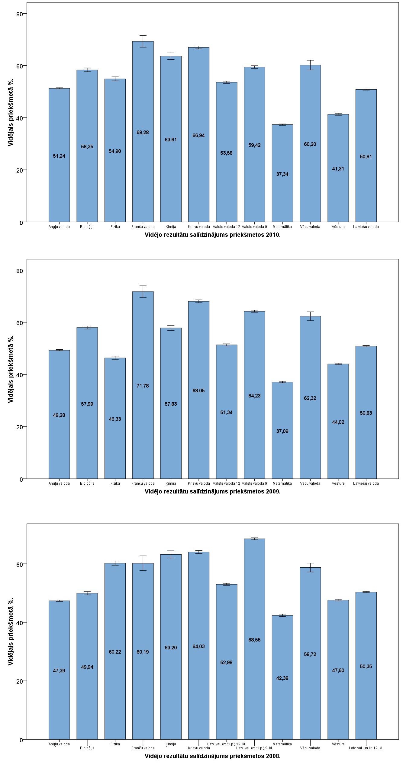 - vidējo rezultātu salīdzinājums republikas nozīmes pilsētās;