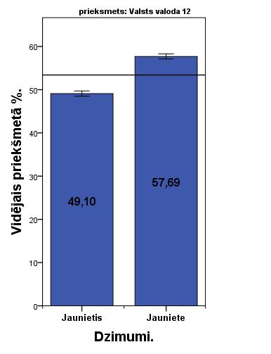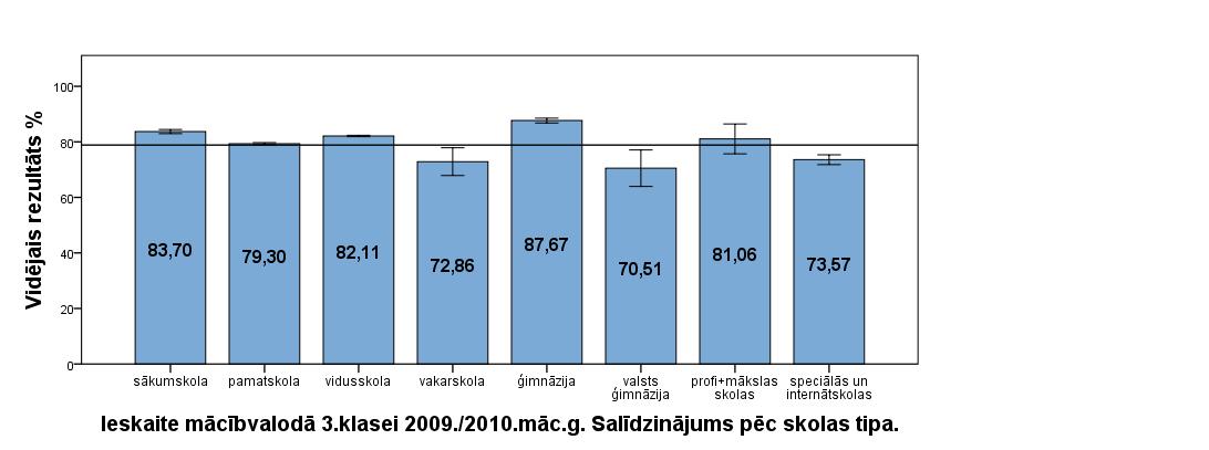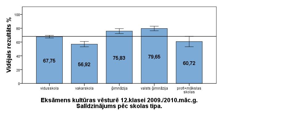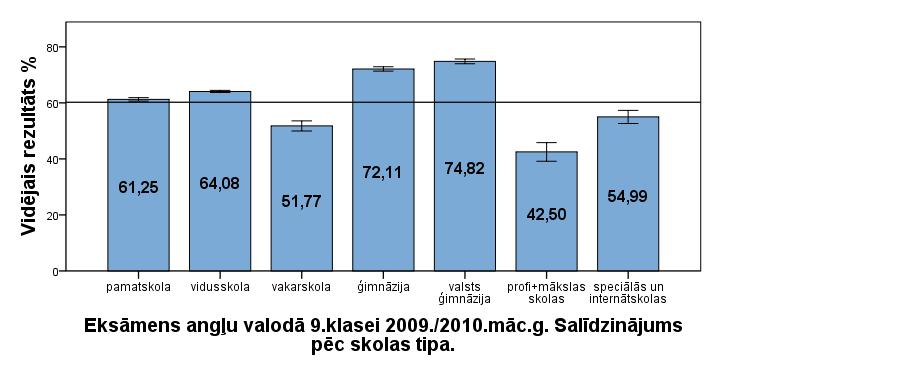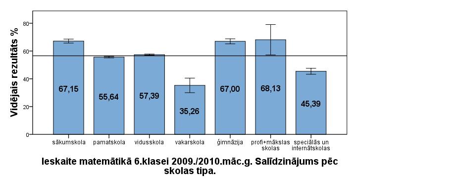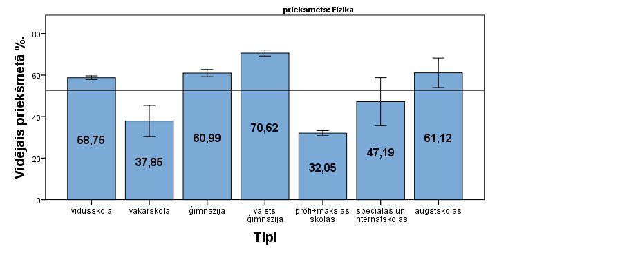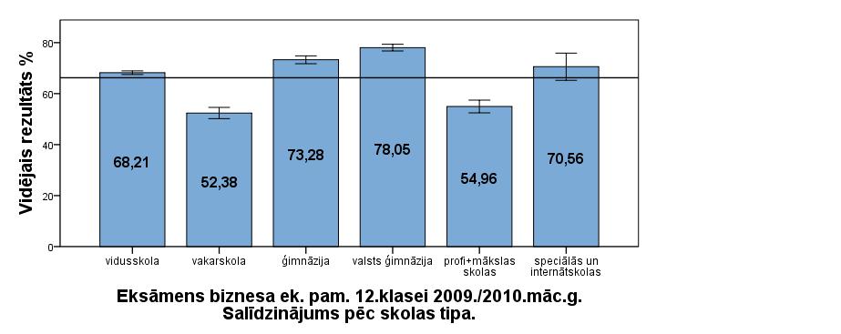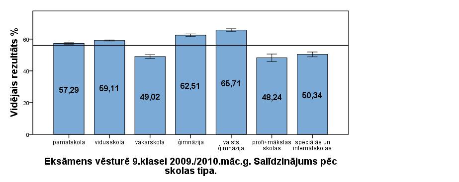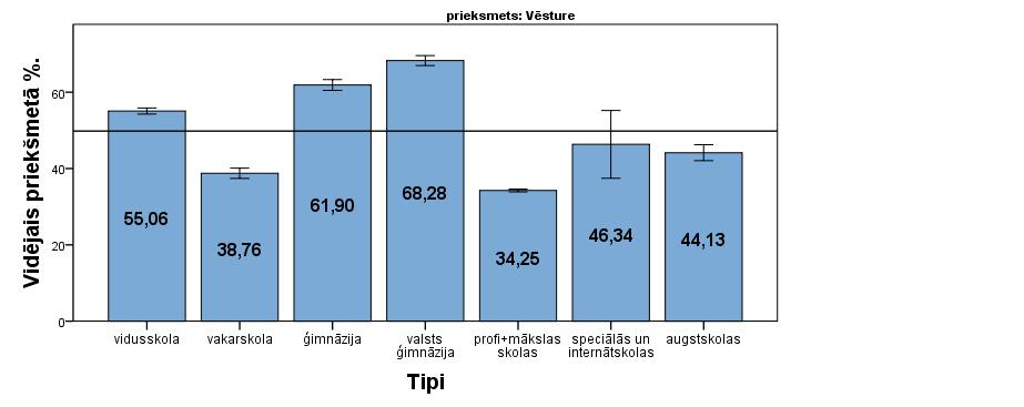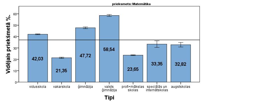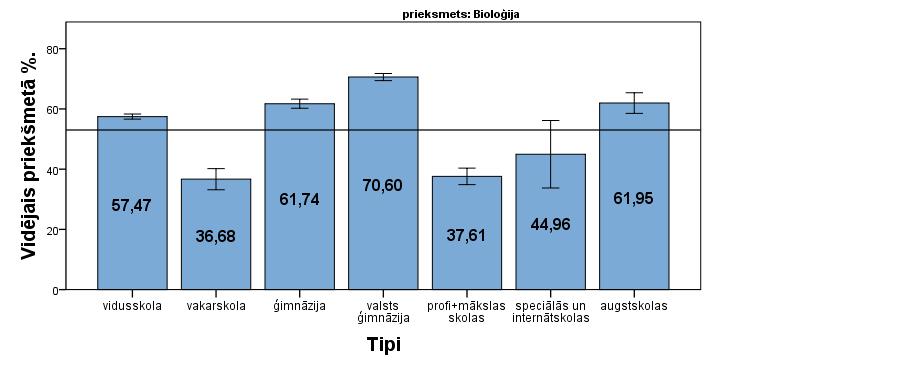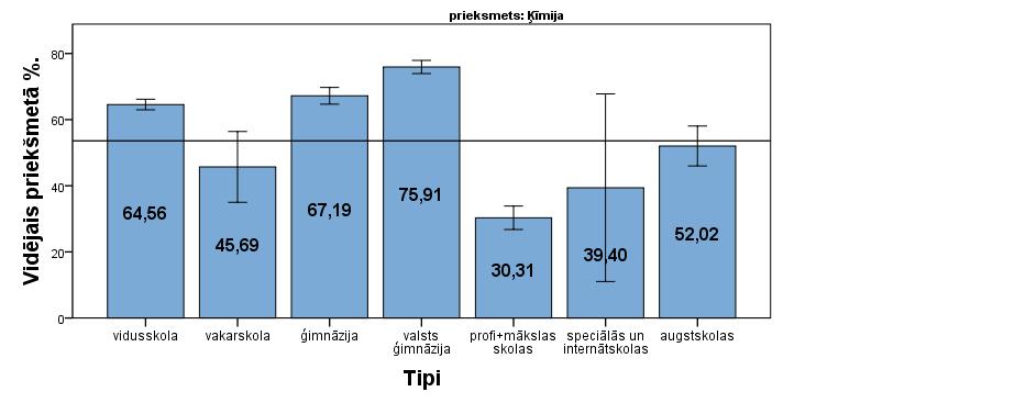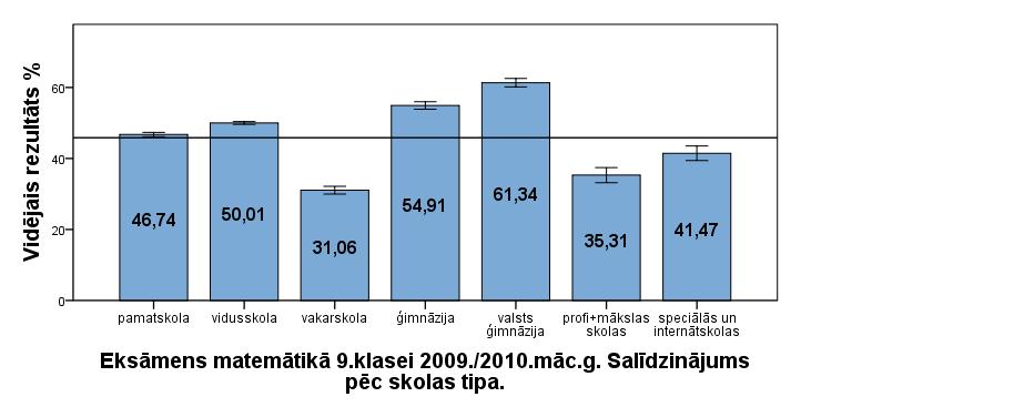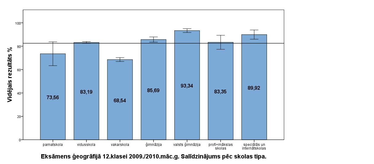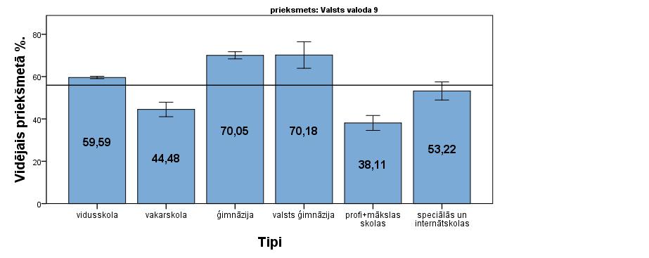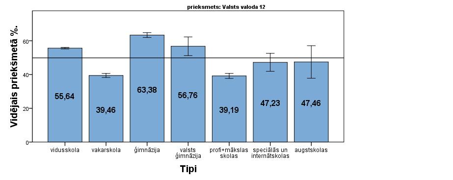 Vairākās stabiņu diagrammās, kurās tiek atspoguļoti vidējie sasniegumi, būs redzama arī horizontāla līnija, kas ir valsts vidējais rādītājs attiecīgajā eksāmenā un, kas palīdzēs objektīvi salīdzināt, vai attiecīgās vidējās vērtības ir statistiski nozīmīgi augstākās vai zemākās kā valsts vidējais.
