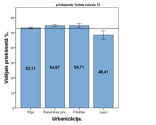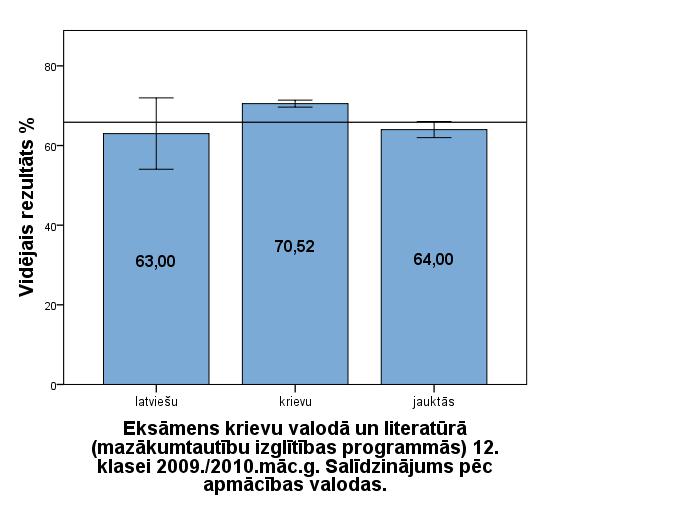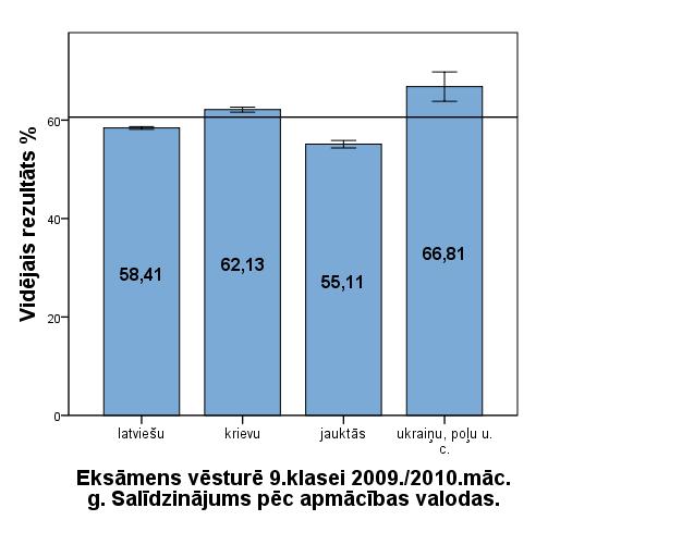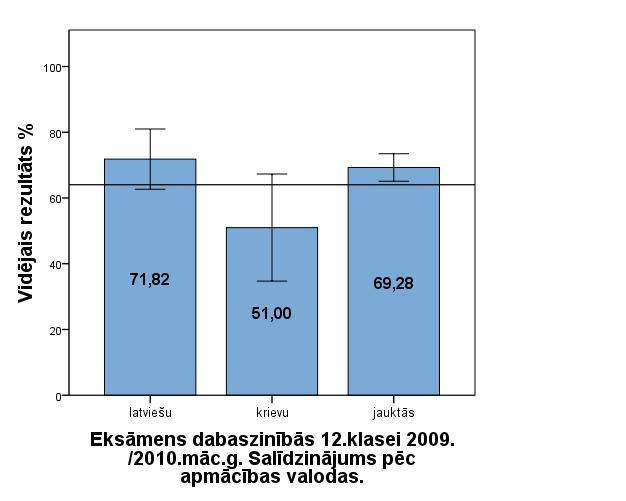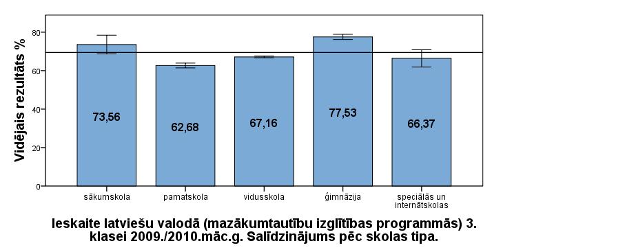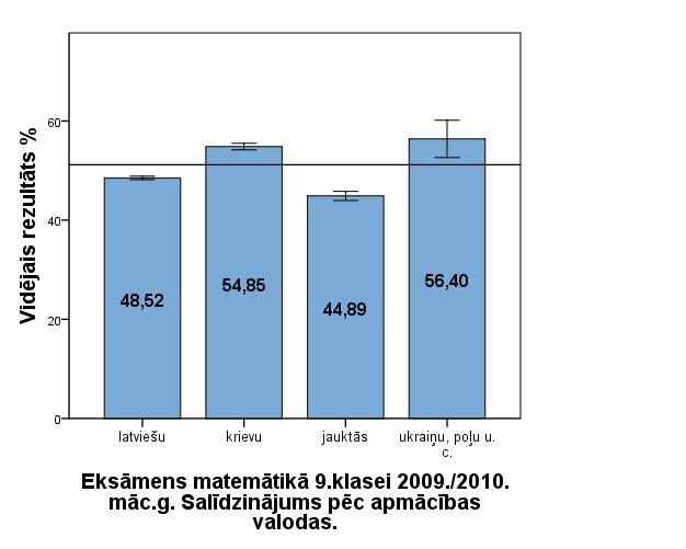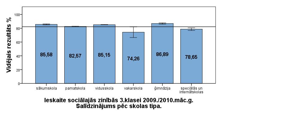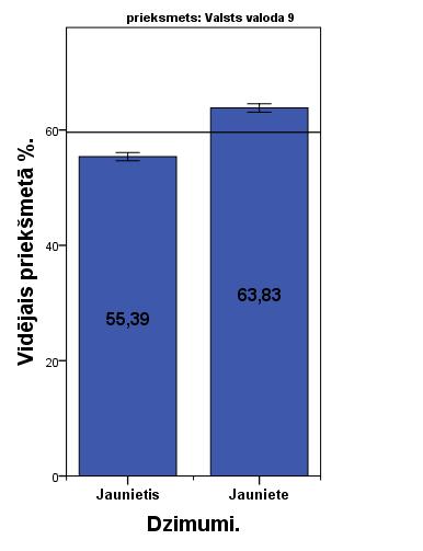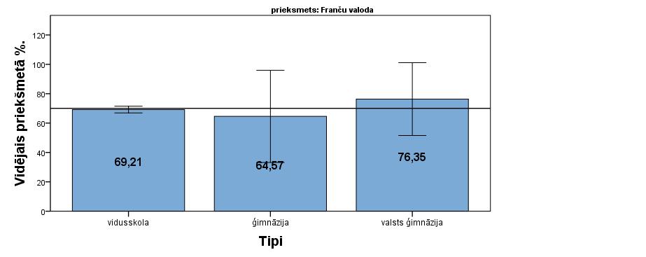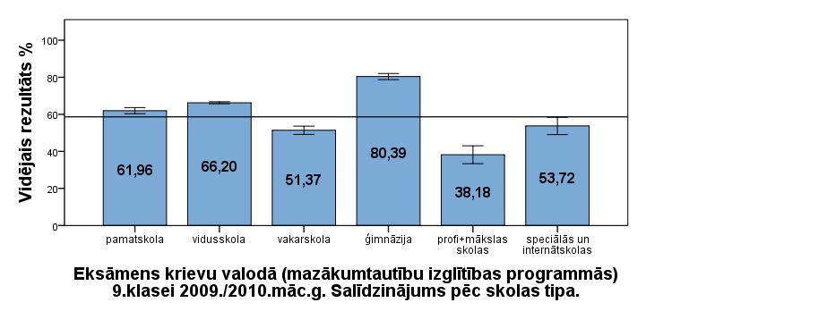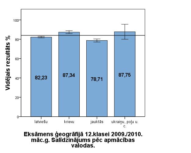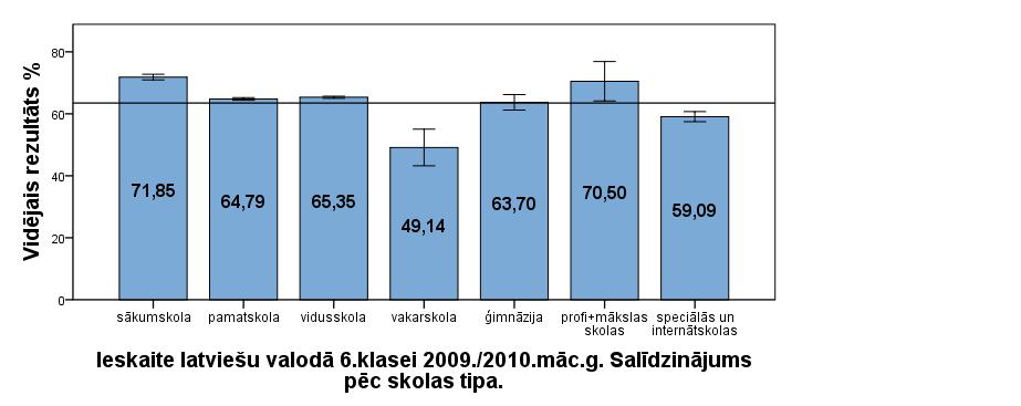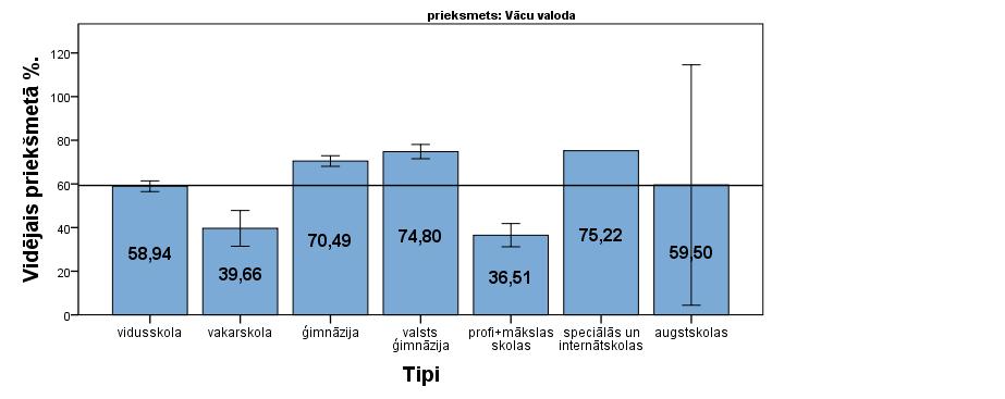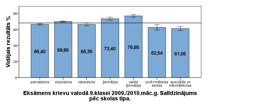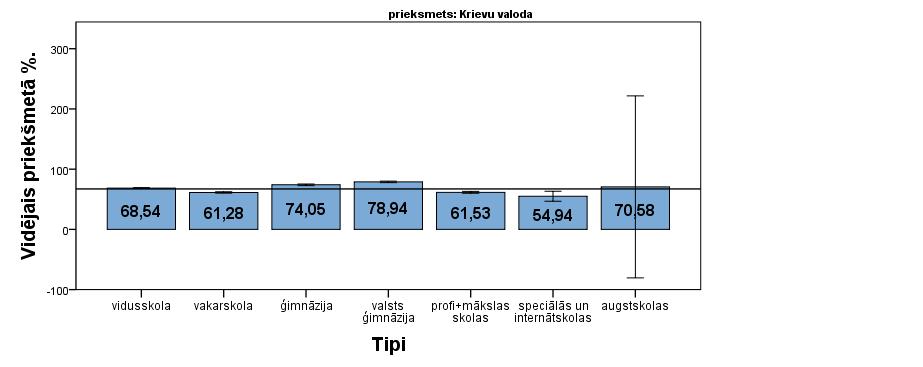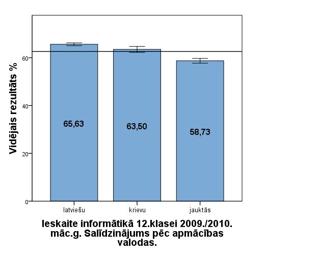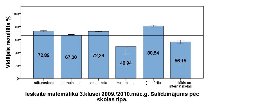 Vairākās stabiņu diagrammās, kurās tiek atspoguļoti vidējie sasniegumi, būs redzama arī horizontāla līnija, kas ir valsts vidējais rādītājs attiecīgajā eksāmenā un, kas palīdzēs objektīvi salīdzināt, vai attiecīgās vidējās vērtības ir statistiski nozīmīgi augstākās vai zemākās kā valsts vidējais.