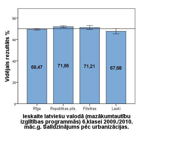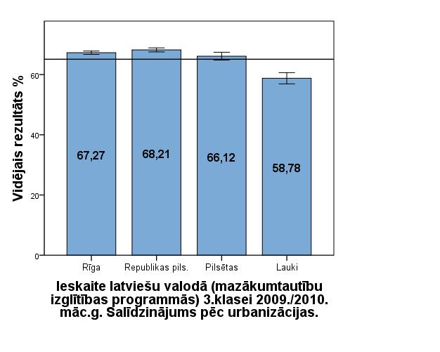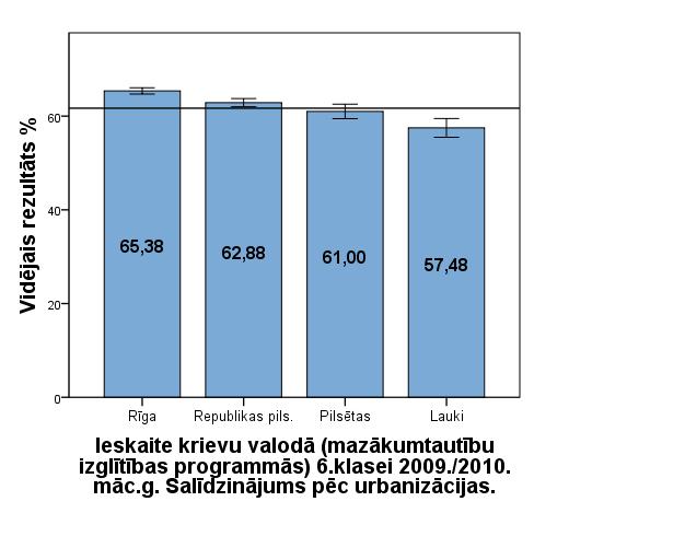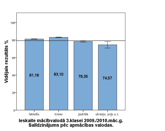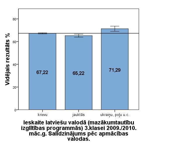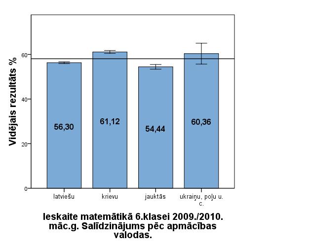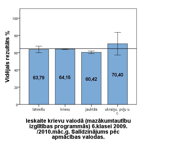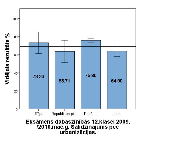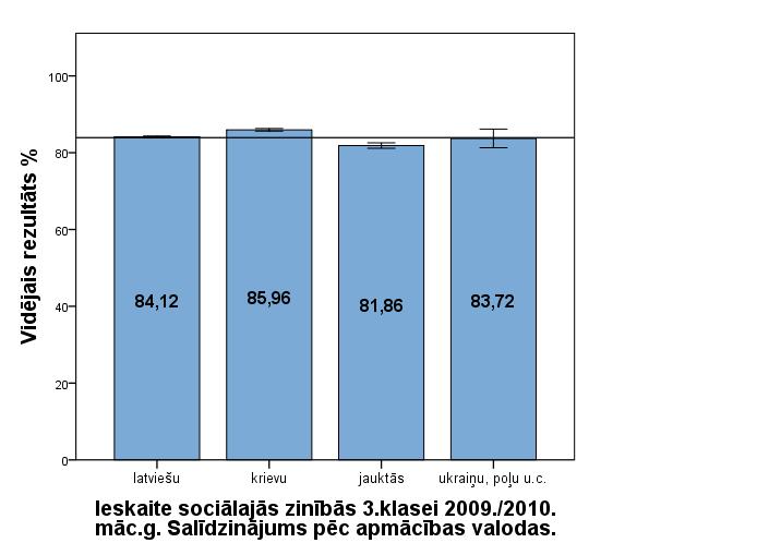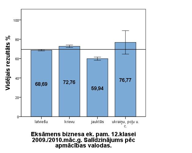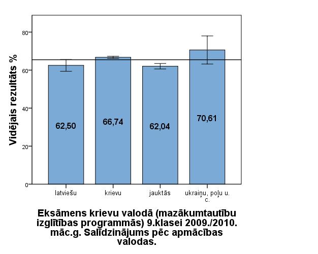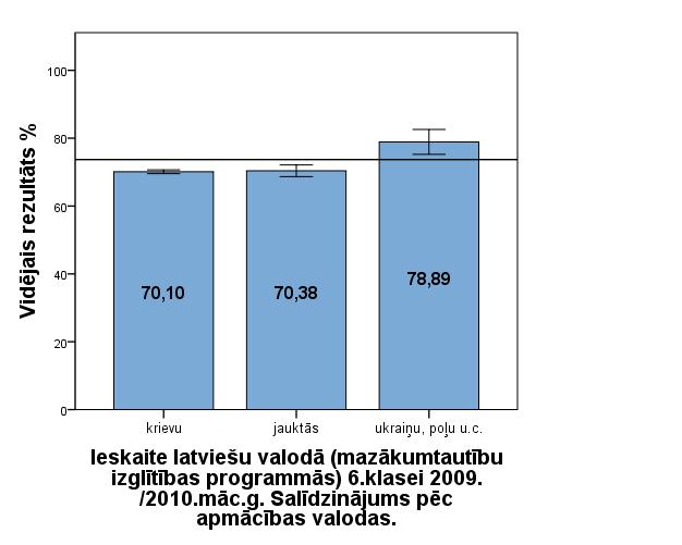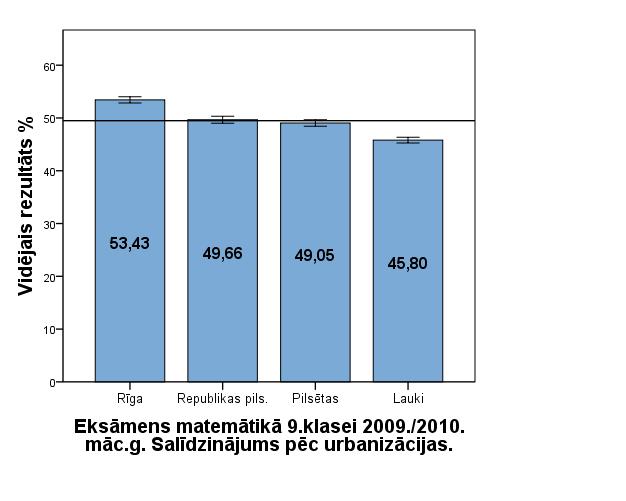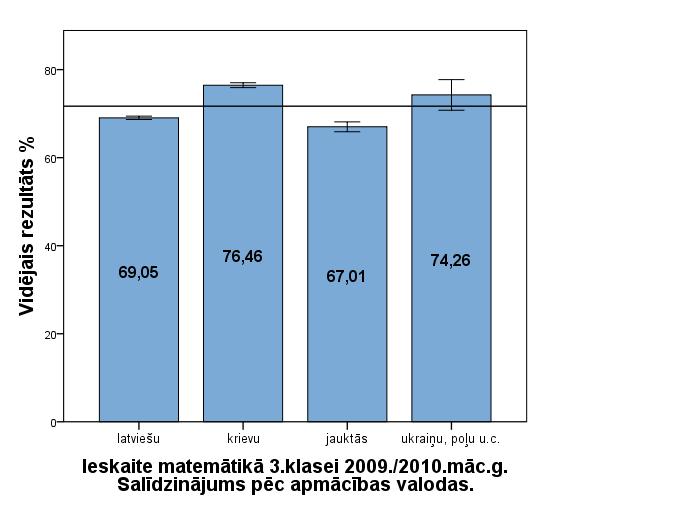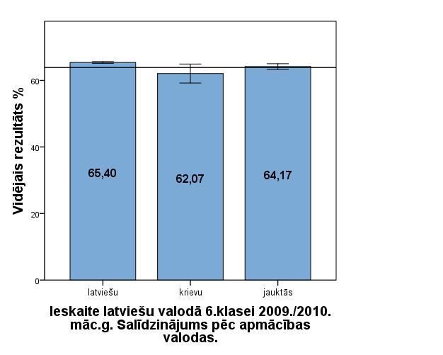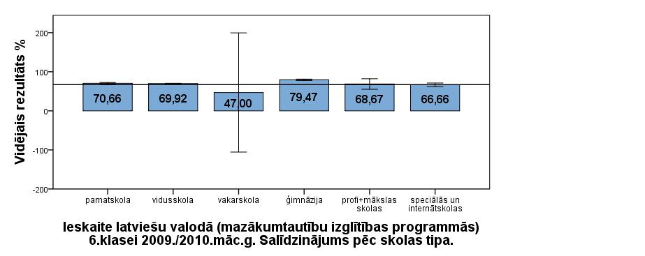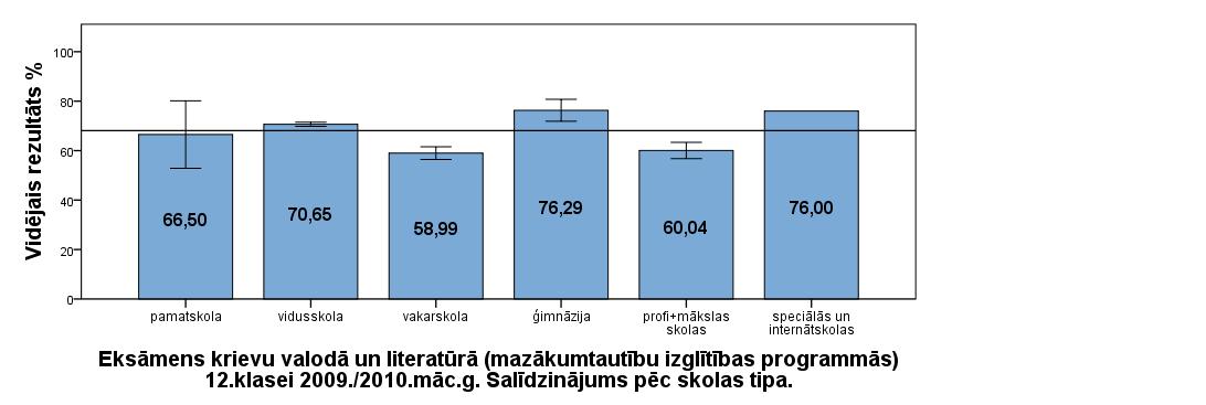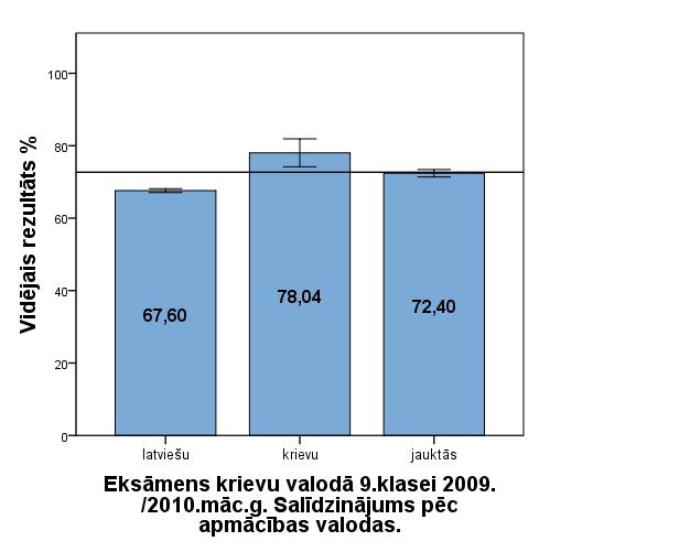 Vairākās stabiņu diagrammās, kurās tiek atspoguļoti vidējie sasniegumi, būs redzama arī horizontāla līnija, kas ir valsts vidējais rādītājs attiecīgajā eksāmenā un, kas palīdzēs objektīvi salīdzināt, vai attiecīgās vidējās vērtības ir statistiski nozīmīgi augstākās vai zemākās kā valsts vidējais.