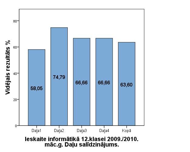 - vidējo rezultātu atspoguļojums diagrammās statistiskās nozīmības robežās;