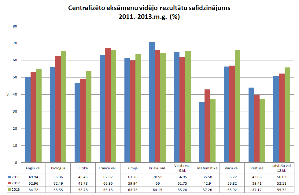 Ir apkopoti un analizēti 2013.gada pavasara valsts pārbaudes darbu rezultāti. Apkopoti vairāk nekā 68000 centralizēto eksāmenu dati un vairāk kā 164000 skolēnu rezultāti necentralizētajos valsts pārbaudes darbos. Valsts pārbaudes darbu vispārīgā un aprakstošā analīze sniedz ikvienam interesentam priekšstatu par skolēnu sasniegumu tendencēm valsts, pašvaldības un skolas līmenī.