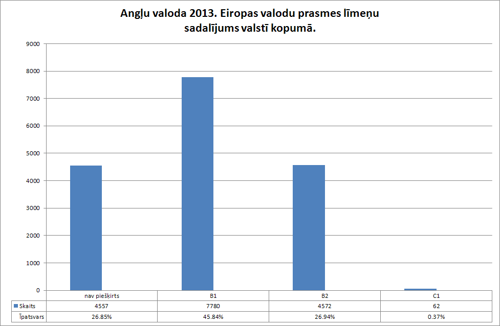 Atbilstoši vidējās izglītības standartā noteiktajām prasībām centralizētajos eksāmenos sākot ar 2012./2013.mācību gadu izglītojamo sasniegumus izsaka tikai procentuālajā novērtējumā. Izglītojamiem, kuru sniegums svešvalodas centralizētajā eksāmenā atbilst vispārējās vidējās izglītības standartā noteiktajiem valodas prasmes līmeņu aprakstiem, papildus norāda valodas prasmes līmeni B1, B2 vai C1. Izglītojamajiem, kuri nesasniedz 40% robežu, vērtējums tiek izteikts tikai procentuālajā novērtējumā.