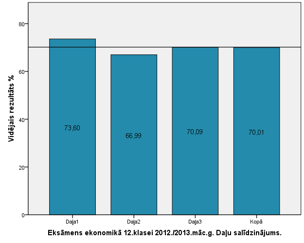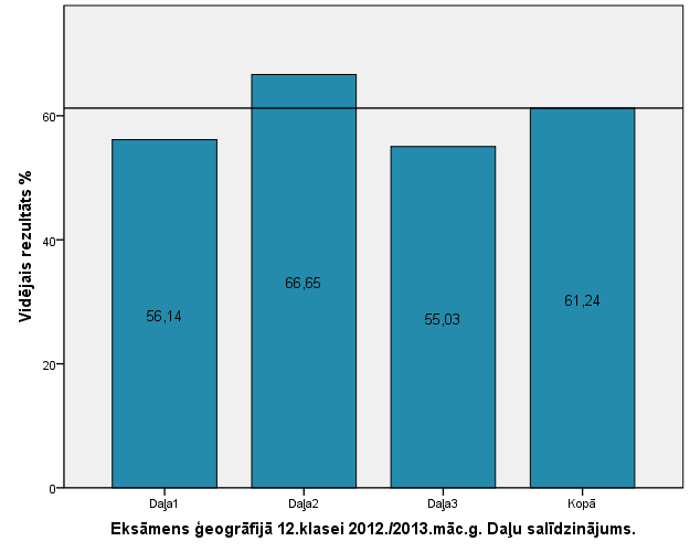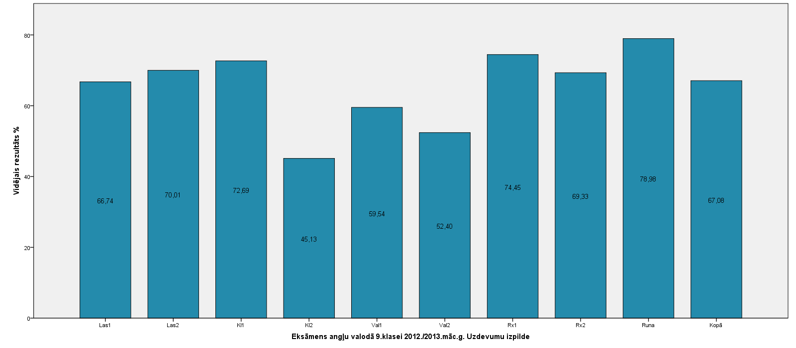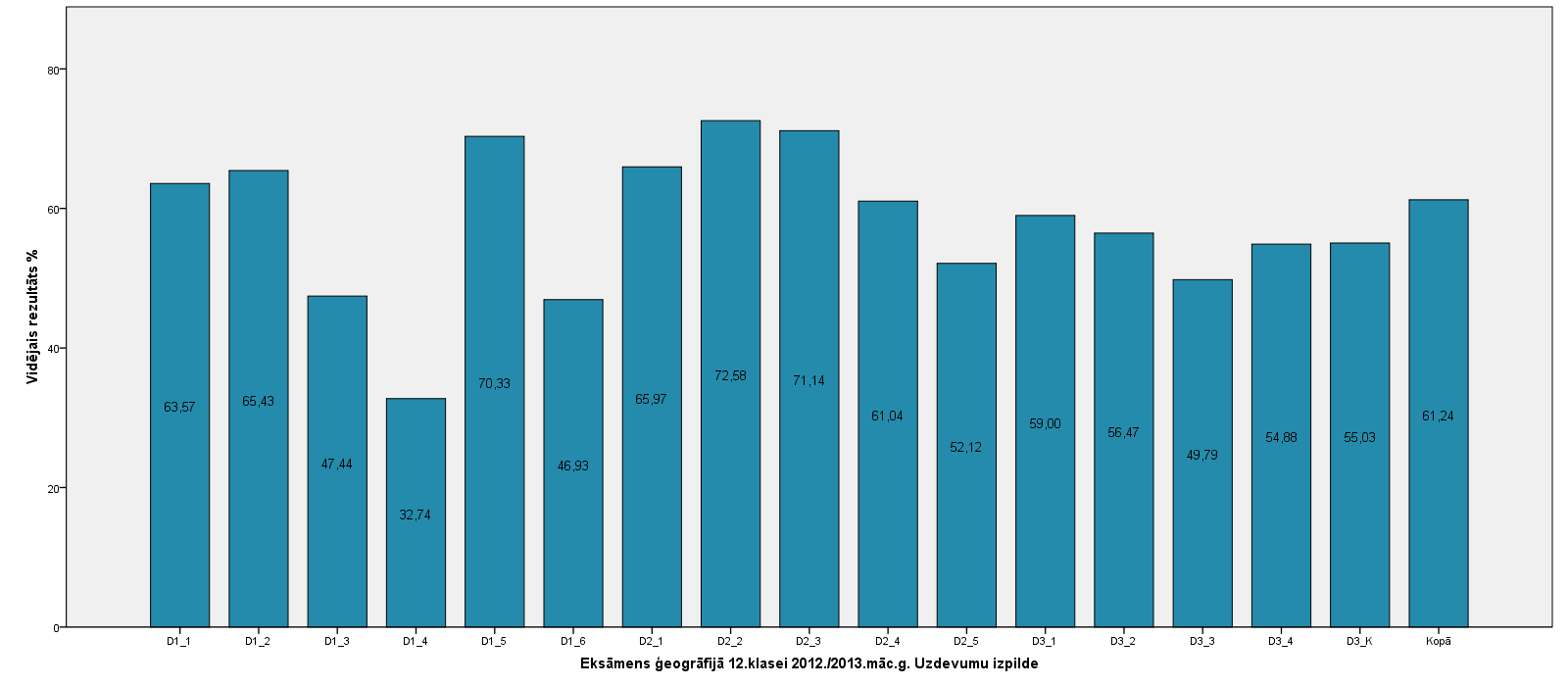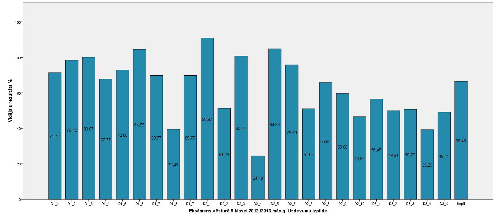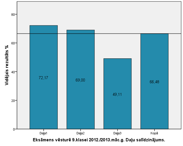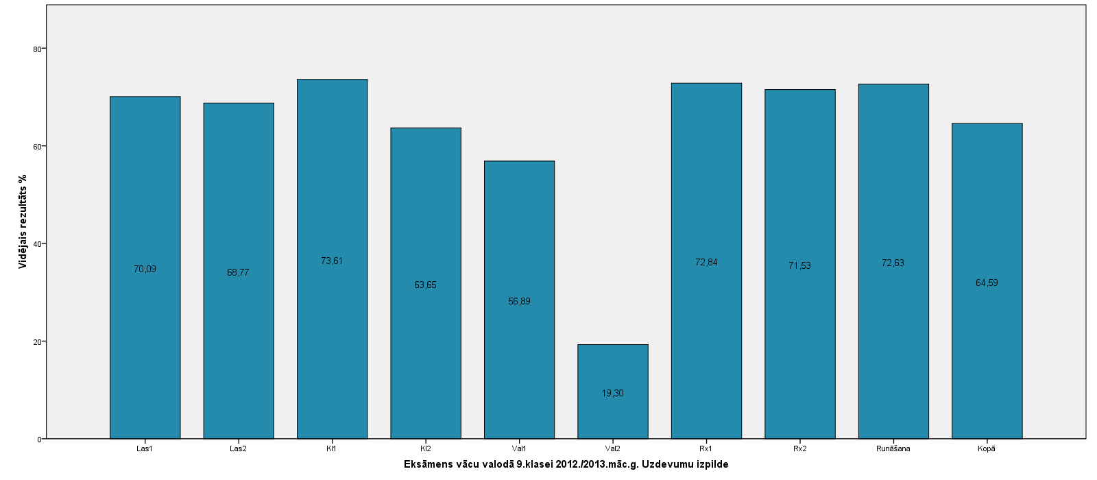 Vidējo sasniegumu analīzē tiek izmantoti katra skolēna iegūtais vērtējums pret maksimāli iespējamo attiecīgajā eksāmenā. Šie dati tiek izteikti % jeb kopprocentos. Uz sertifikāta tas tiek atspoguļots kā kopvērtējums. Piemēram, ja matemātikas 12.klases eksāmenā maksimālie punkti bija 80 un skolēns ieguva 65 punktus, tad kopprocents ir 81%. No šīm vērtībām arī tiek aprēķināts skolas vidējais un valsts vidējais vērtējums.
