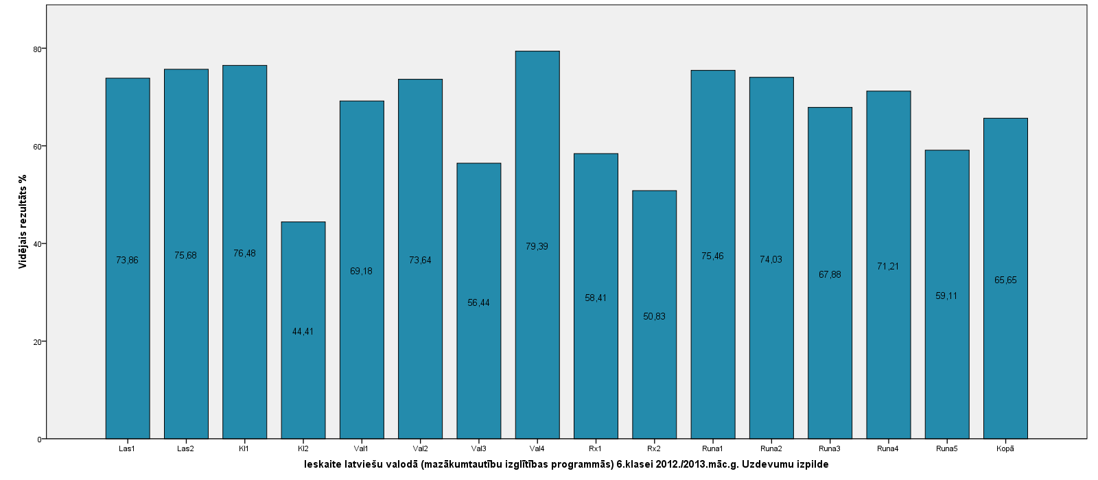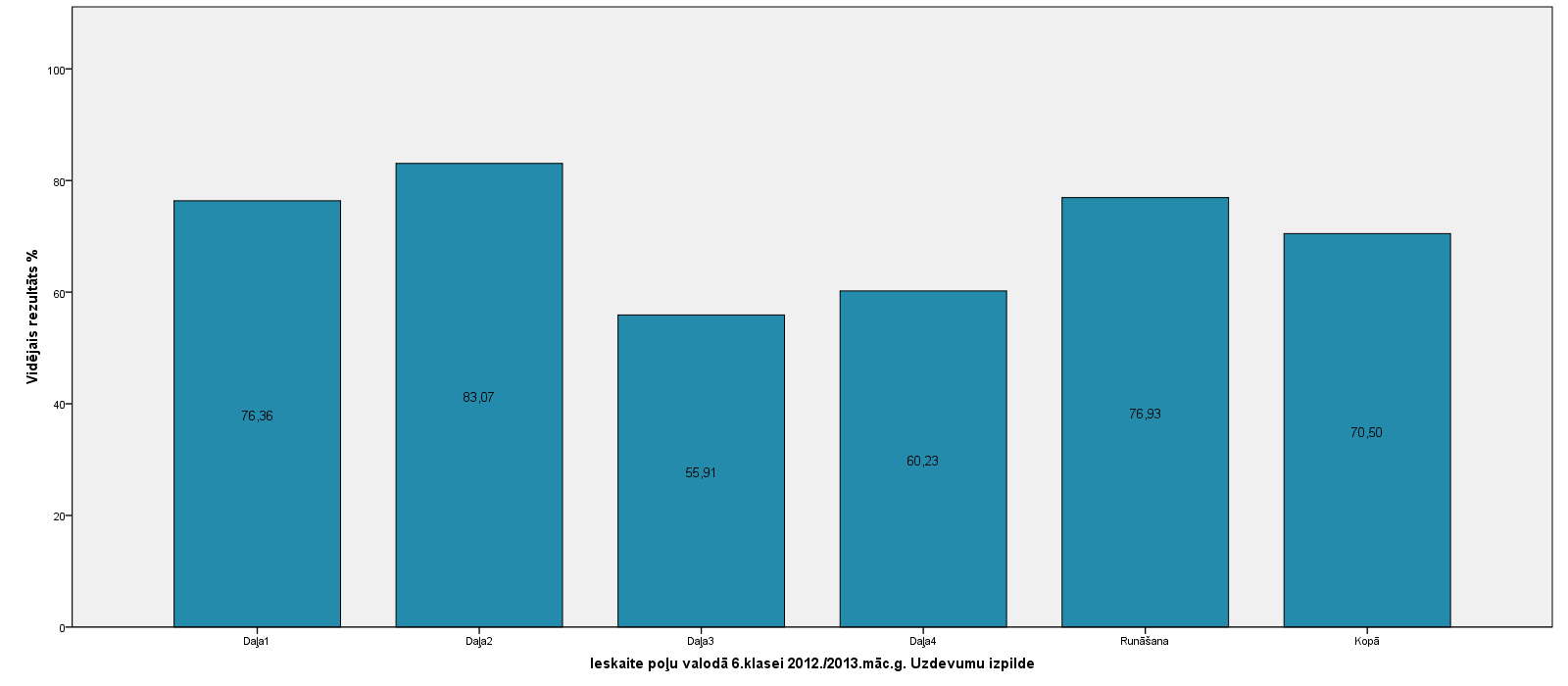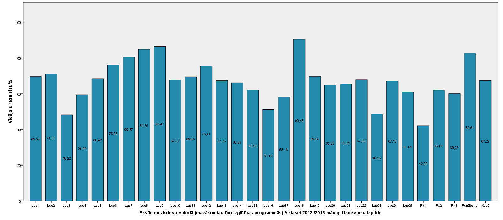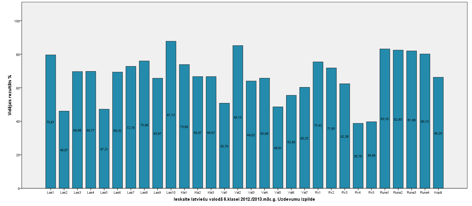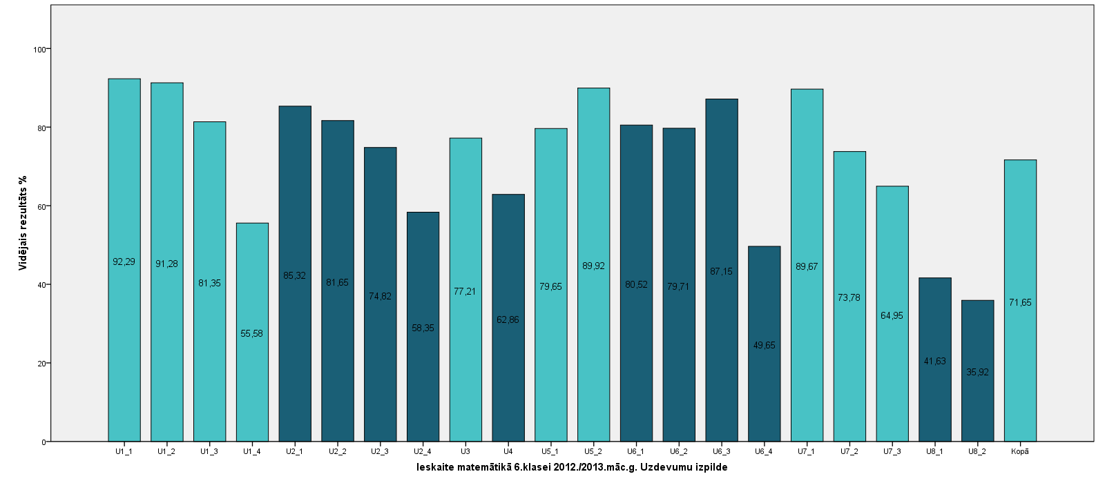 Vidējo sasniegumu analīzē tiek izmantoti katra skolēna iegūtais vērtējums pret maksimāli iespējamo attiecīgajā eksāmenā. Šie dati tiek izteikti % jeb kopprocentos. Uz sertifikāta tas tiek atspoguļots kā kopvērtējums. Piemēram, ja matemātikas 12.klases eksāmenā maksimālie punkti bija 80 un skolēns ieguva 65 punktus, tad kopprocents ir 81%. No šīm vērtībām arī tiek aprēķināts skolas vidējais un valsts vidējais vērtējums.