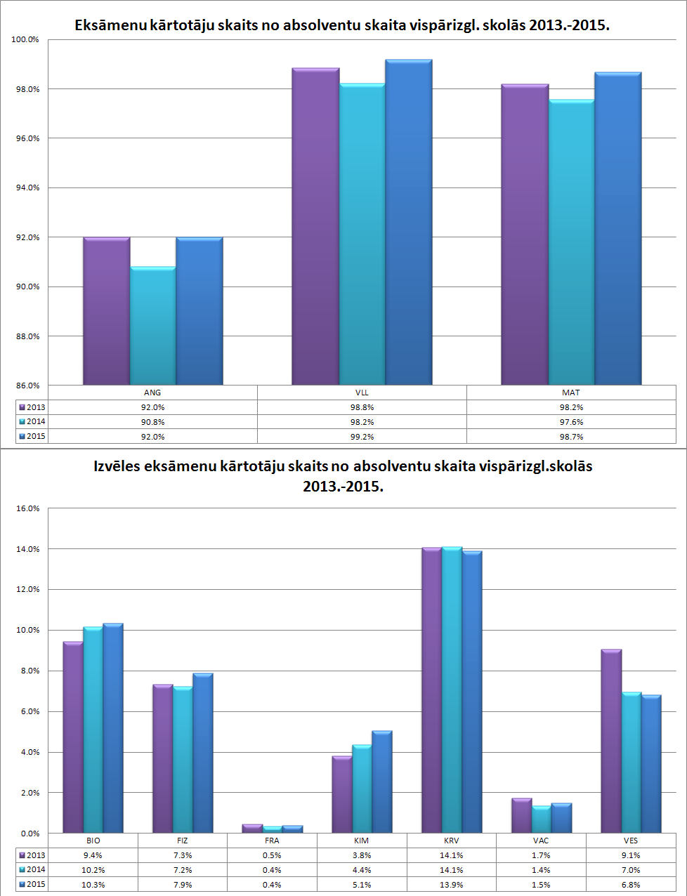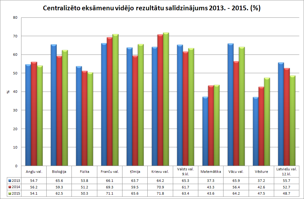 Ir sagatavots statistikas pārskats par 2015.gada pavasara valsts pārbaudes darbu rezultātiem. Apkopoti gandrīz 56696 centralizēto eksāmenu dati. Valsts pārbaudes darbu vispārīgā un aprakstošā analīze sniedz ikvienam interesentam priekšstatu par skolēnu sasniegumu tendencēm valsts, pašvaldības un skolas līmenī.
