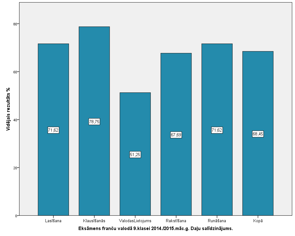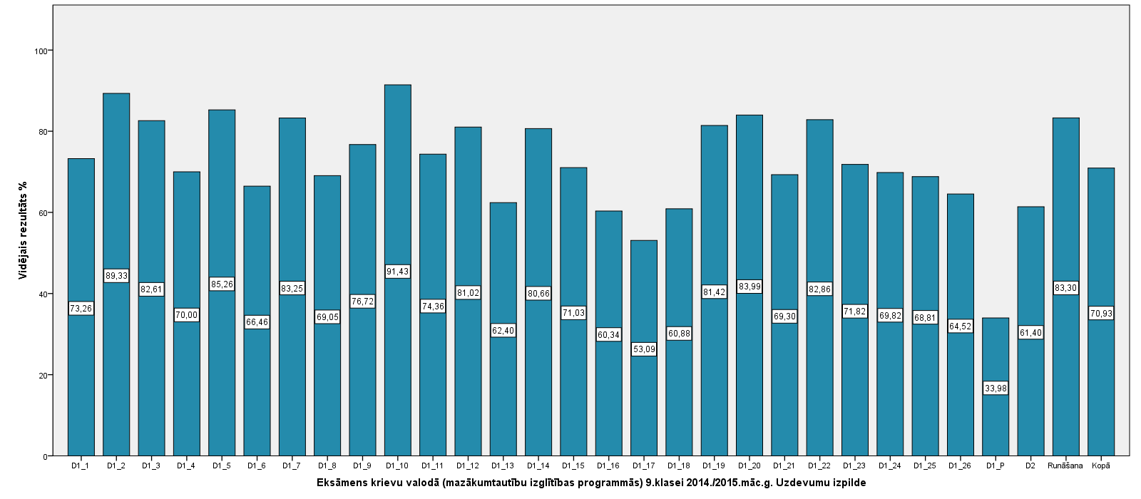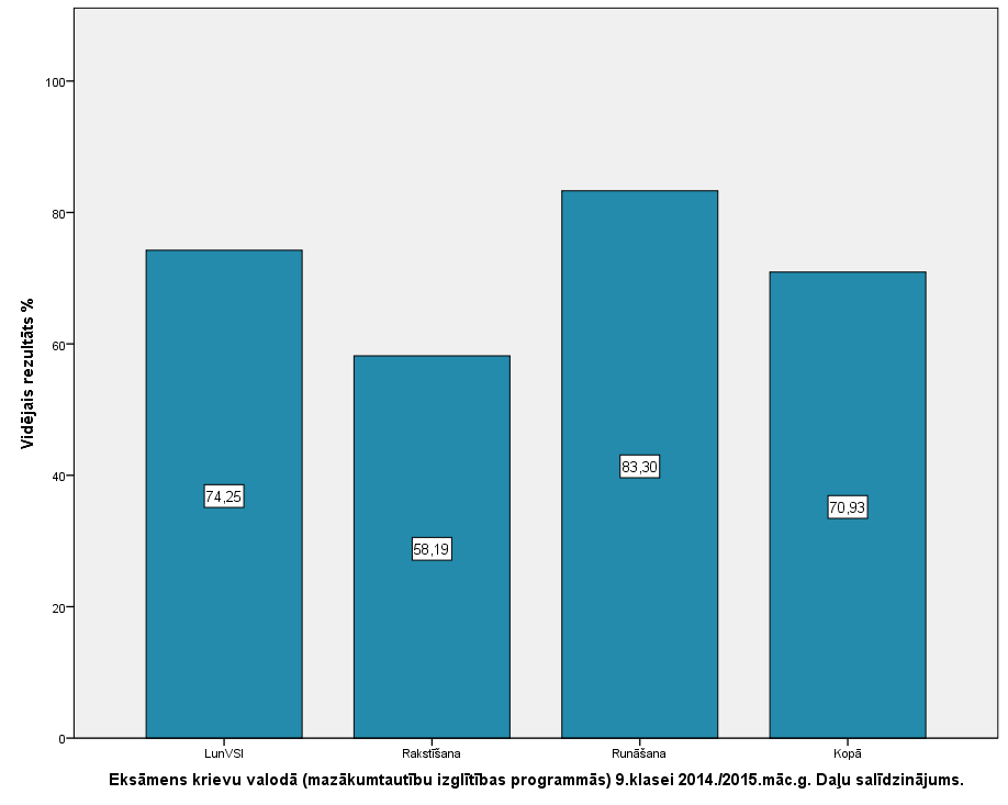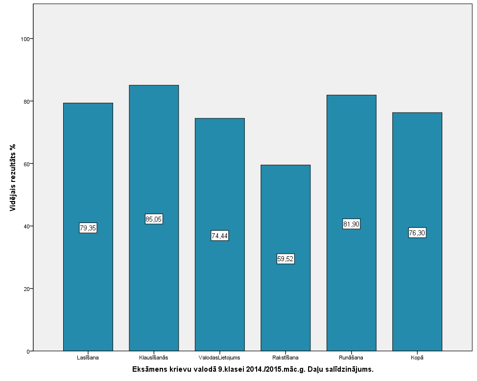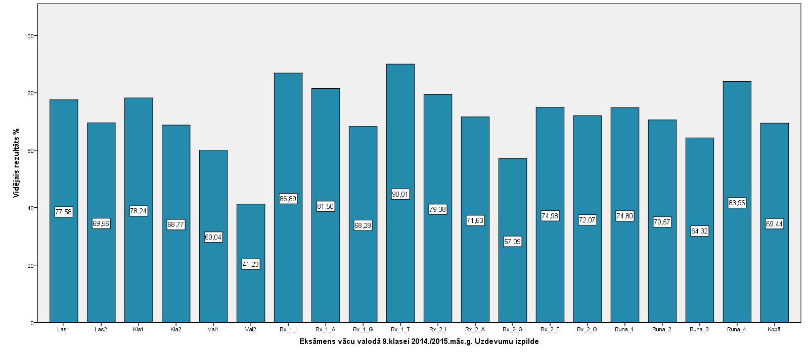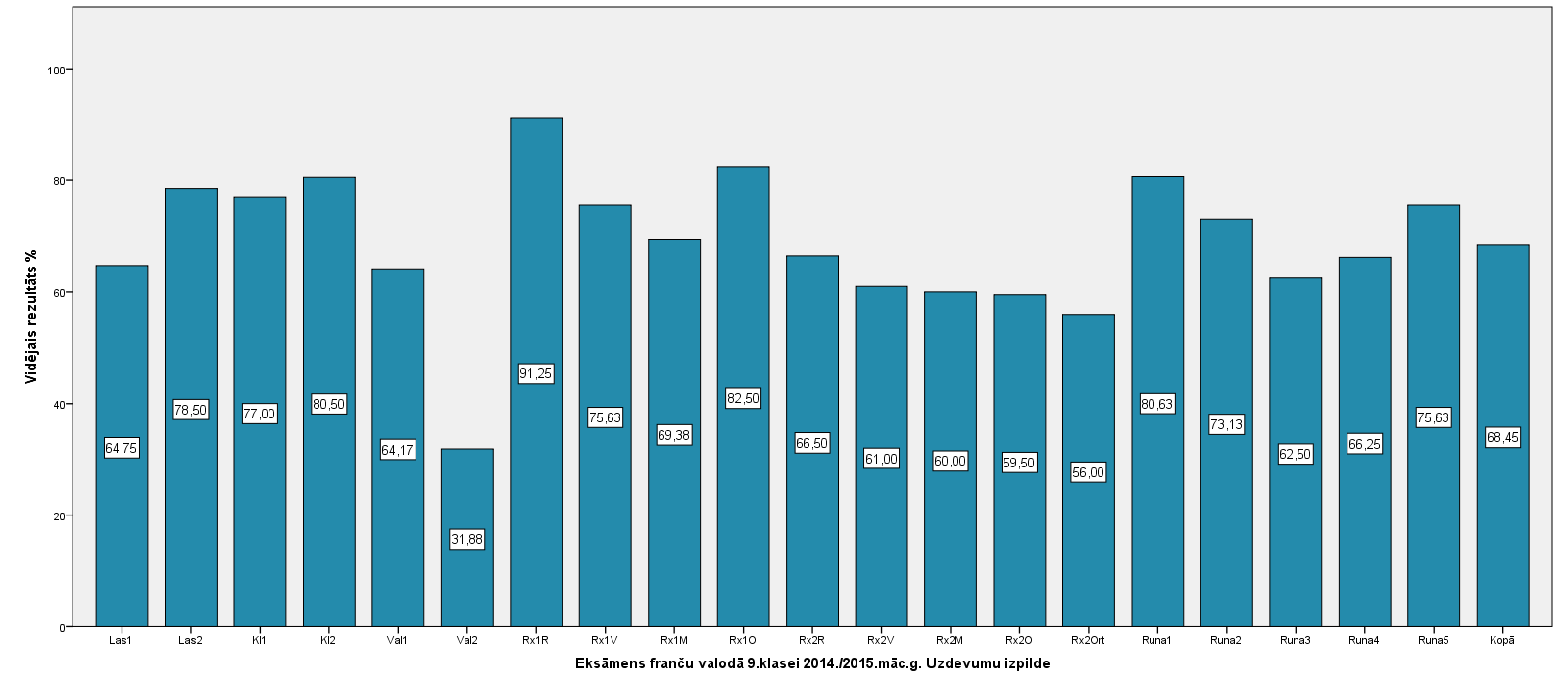 Vidējo sasniegumu analīzē tiek izmantoti katra skolēna iegūtais vērtējums pret maksimāli iespējamo attiecīgajā eksāmenā. Šie dati tiek izteikti % jeb kopprocentos. Uz sertifikāta tas tiek atspoguļots kā kopvērtējums. Piemēram, ja matemātikas 12.klases eksāmenā maksimālie punkti bija 80 un skolēns ieguva 65 punktus, tad kopprocents ir 81%. No šīm vērtībām arī tiek aprēķināts skolas vidējais un valsts vidējais vērtējums.